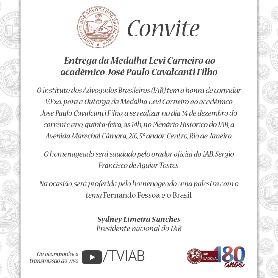 Entrega da Medalha Levi Carneiro ao acadêmico José Paulo Cavalcanti Filho