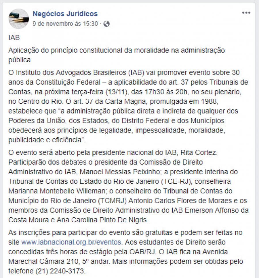 IAB debate aplicação do princípio da moralidade na administração pública