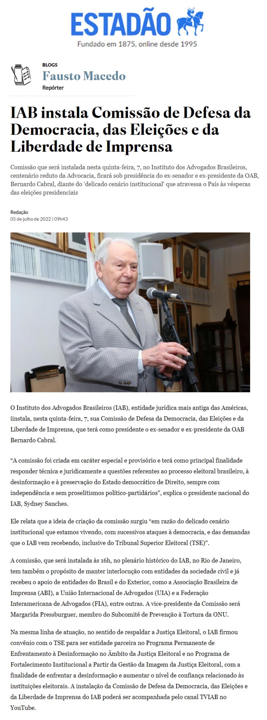 IAB instala Comissão de Defesa da Democracia, das Eleições e da Liberdade de Imprensa