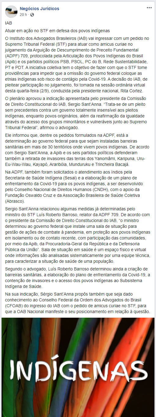 IAB quer atuar em ação no STF em defesa dos povos indígenas