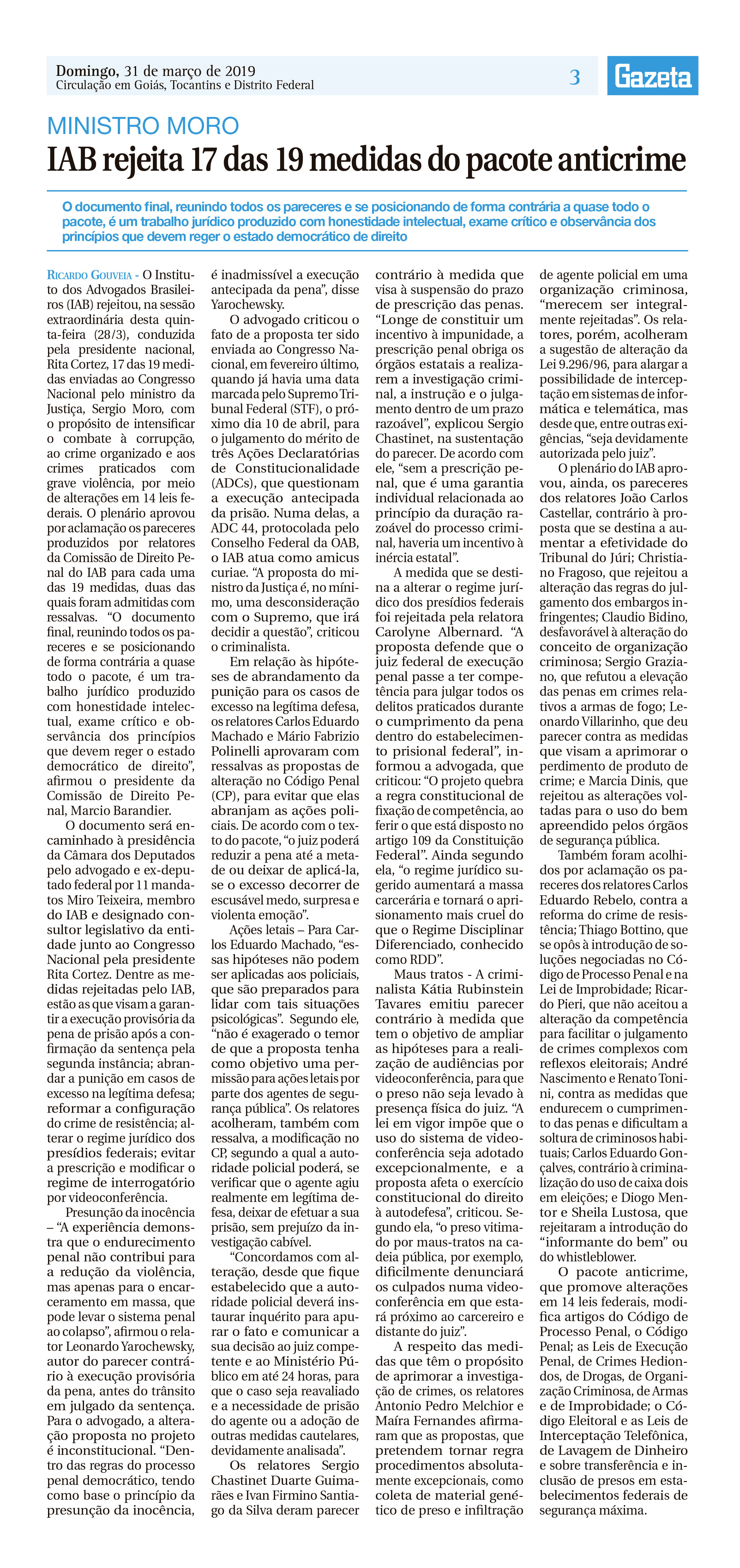 FONTE: Gazeta do Estado (GO) - 31/3/2019