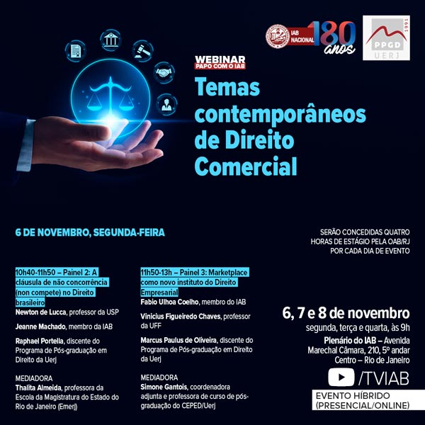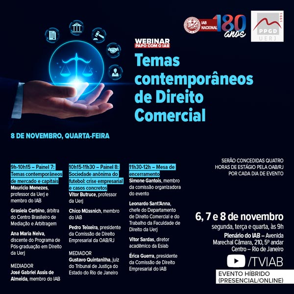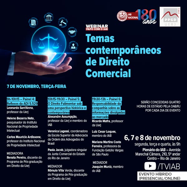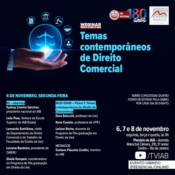 Serão concedidas 04 (quatro) horas de estágio pela OAB/RJ por cada dia de evento