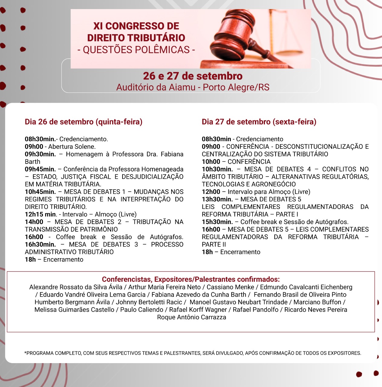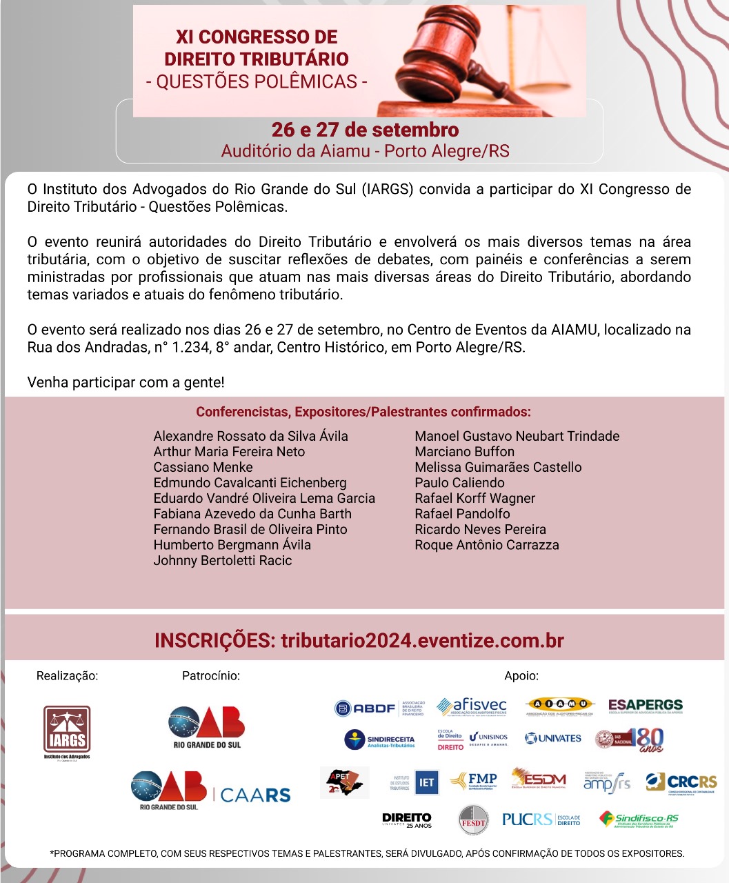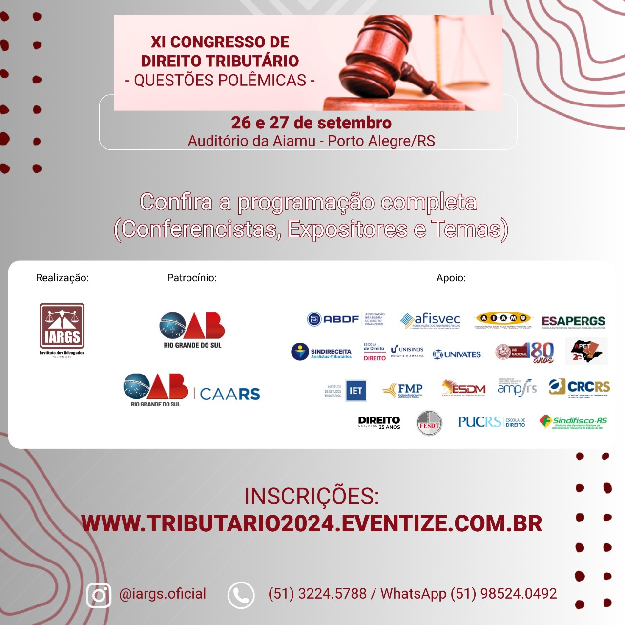 Instituto dos Advogados do Rio Grande do Sul (IARGS) convida a participar do XI Congresso de Direito Tributário - Questões Polêmicas.