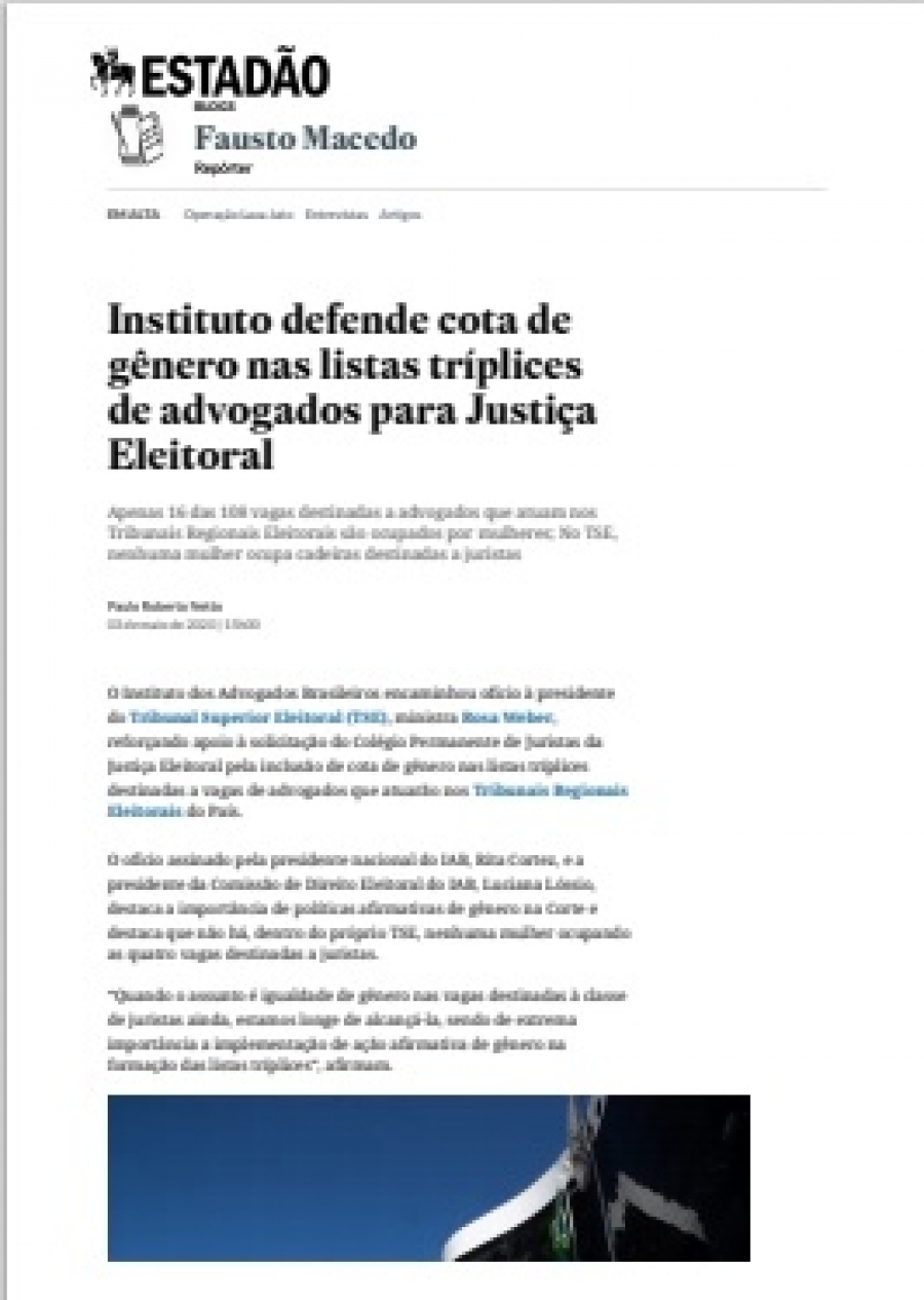 Instituto defende cota de gênero nas listas tríplices de advogados para Justiça Eleitoral