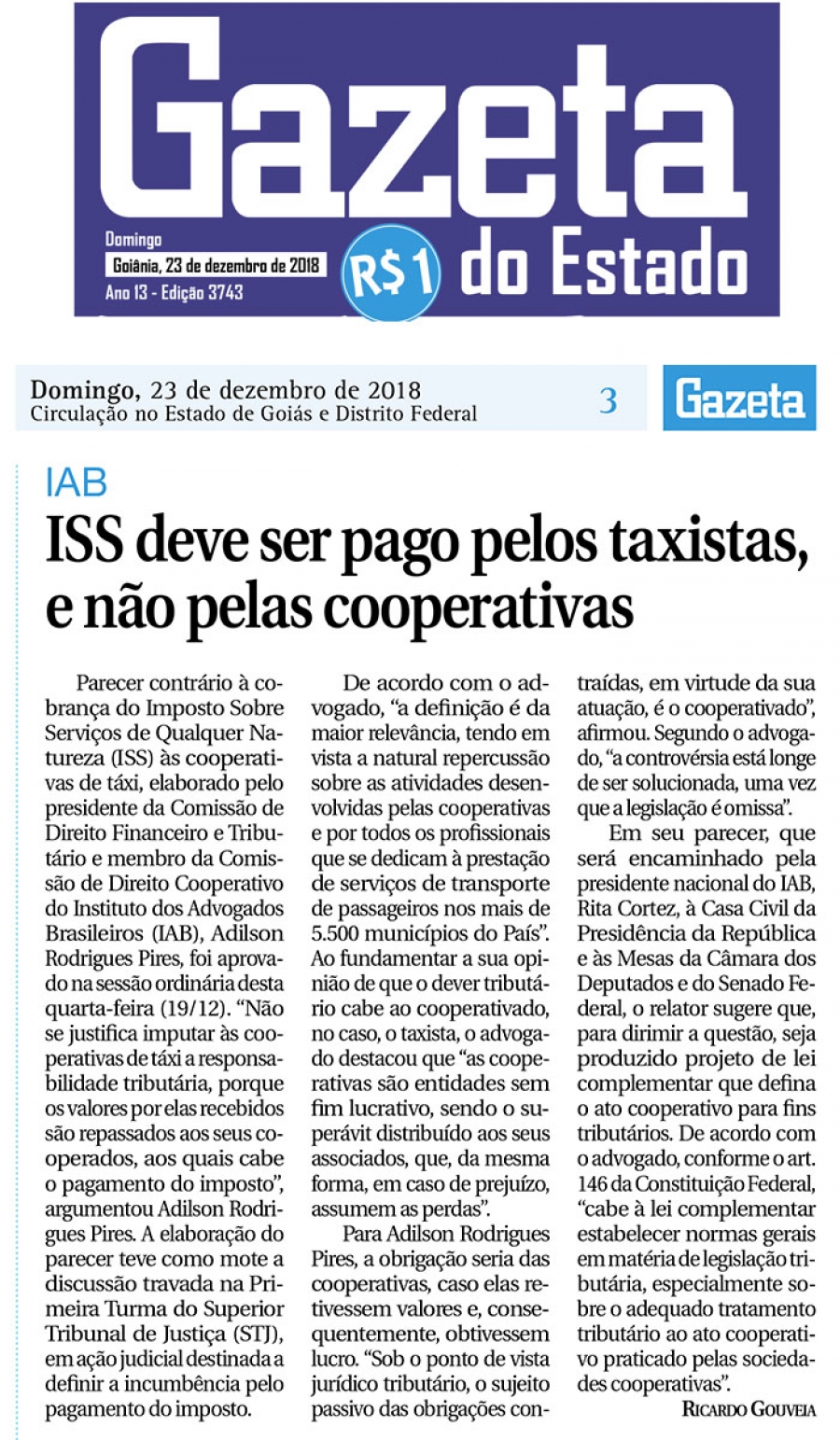ISS deve ser pago pelos taxistas, e não pelas cooperativas