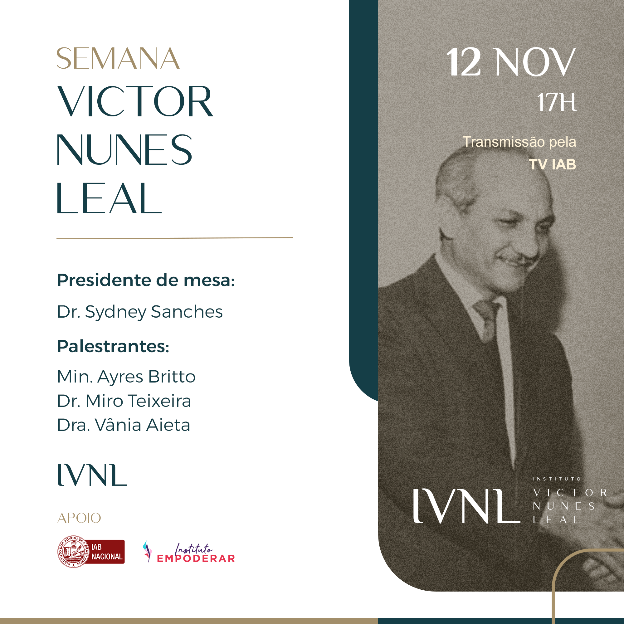 Dias 11 à 13 de novembro Evento em parceria com Instituto Victor Nunes Leal No dia 12.11 faremos a transmissão pelo canal Youtube do IAB . Acesse aqui Para maiores informações acesse o site do evento na Plataforma Sympla AQUI