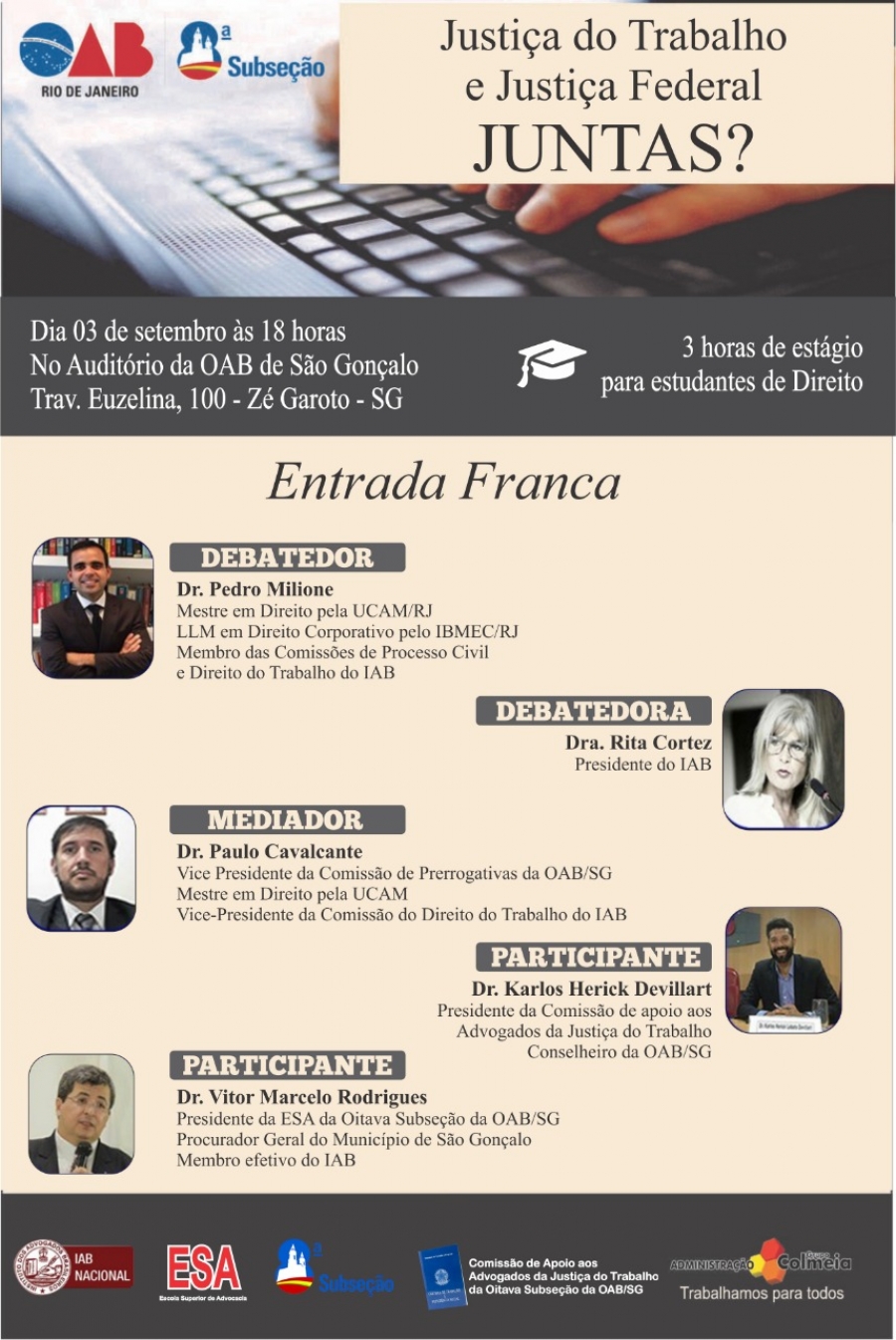 Dia 03/09/2018, às 18:00h, No Auditório da OAB de São Gonçalo, Trav. Euzelina ,100 - Zé Garoto - SG.