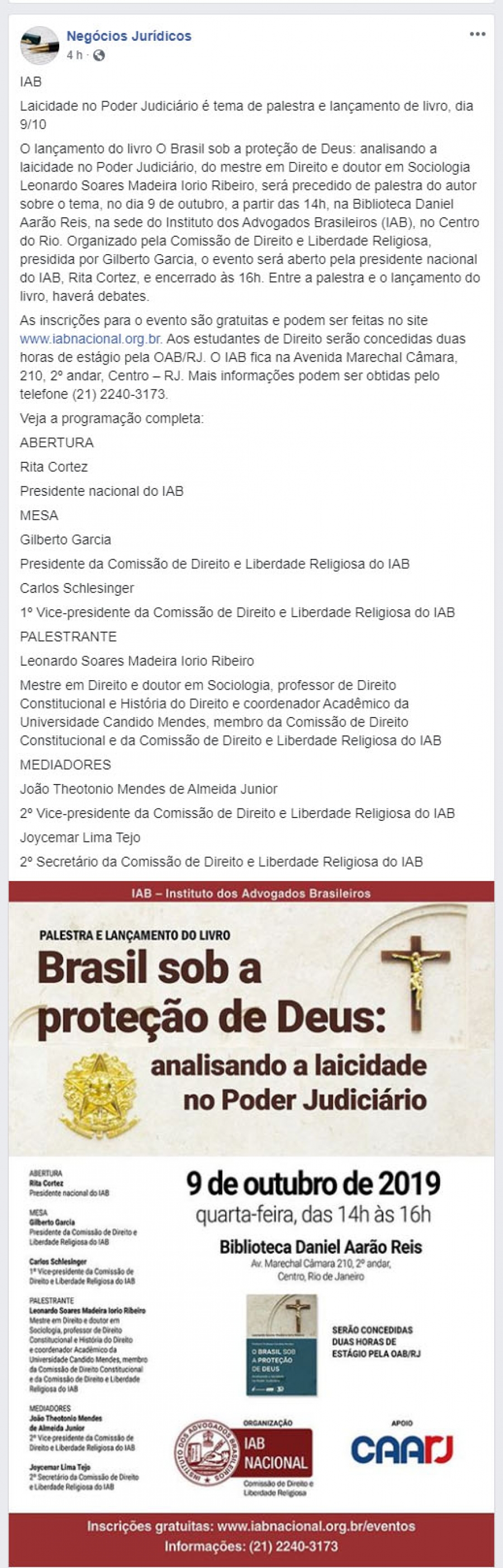Laicidade no Poder Judiciário é tema de palestra e lançamento de livro