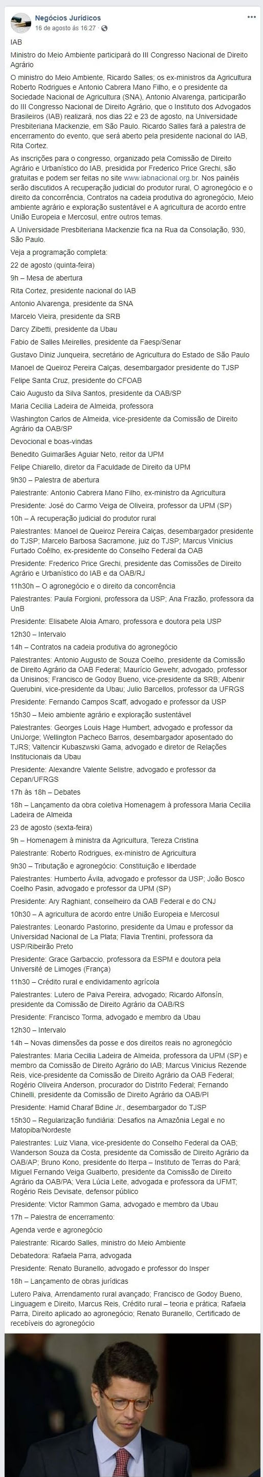 Ministro do Meio Ambiente participará do III Congresso Nacional de Direito Agrário