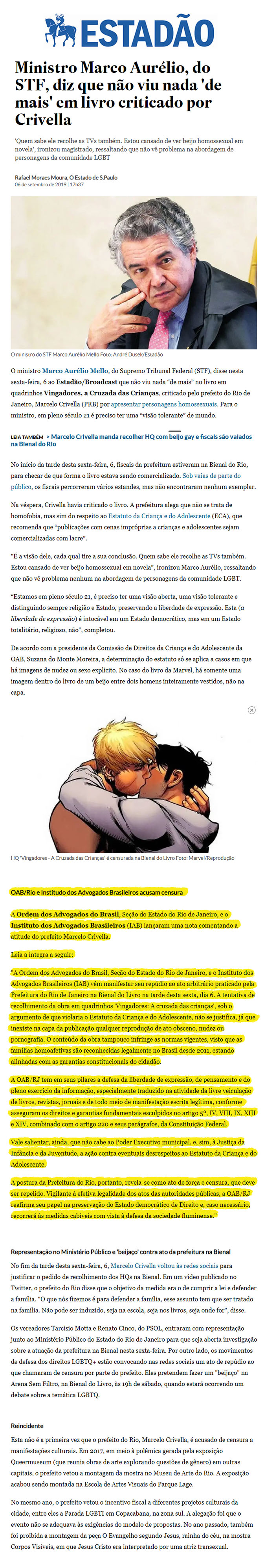 Ministro Marco Aurélio, do STF, diz que não viu nada 'de mais' em livro criticado por Crivella