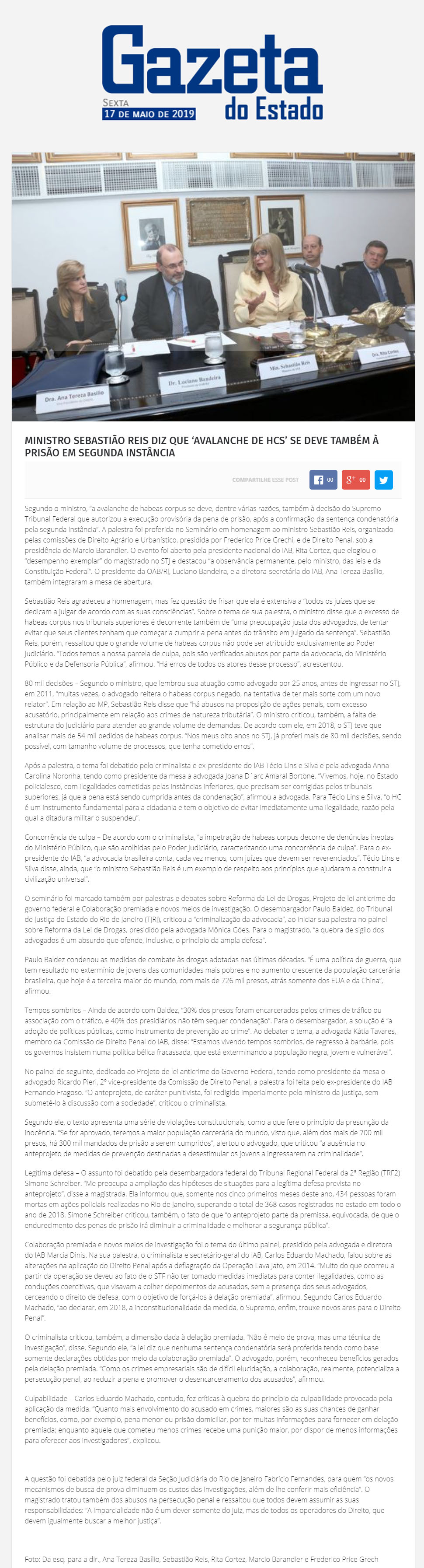 FONTE: Gazeta do Estado (GO) - 16/05/2019