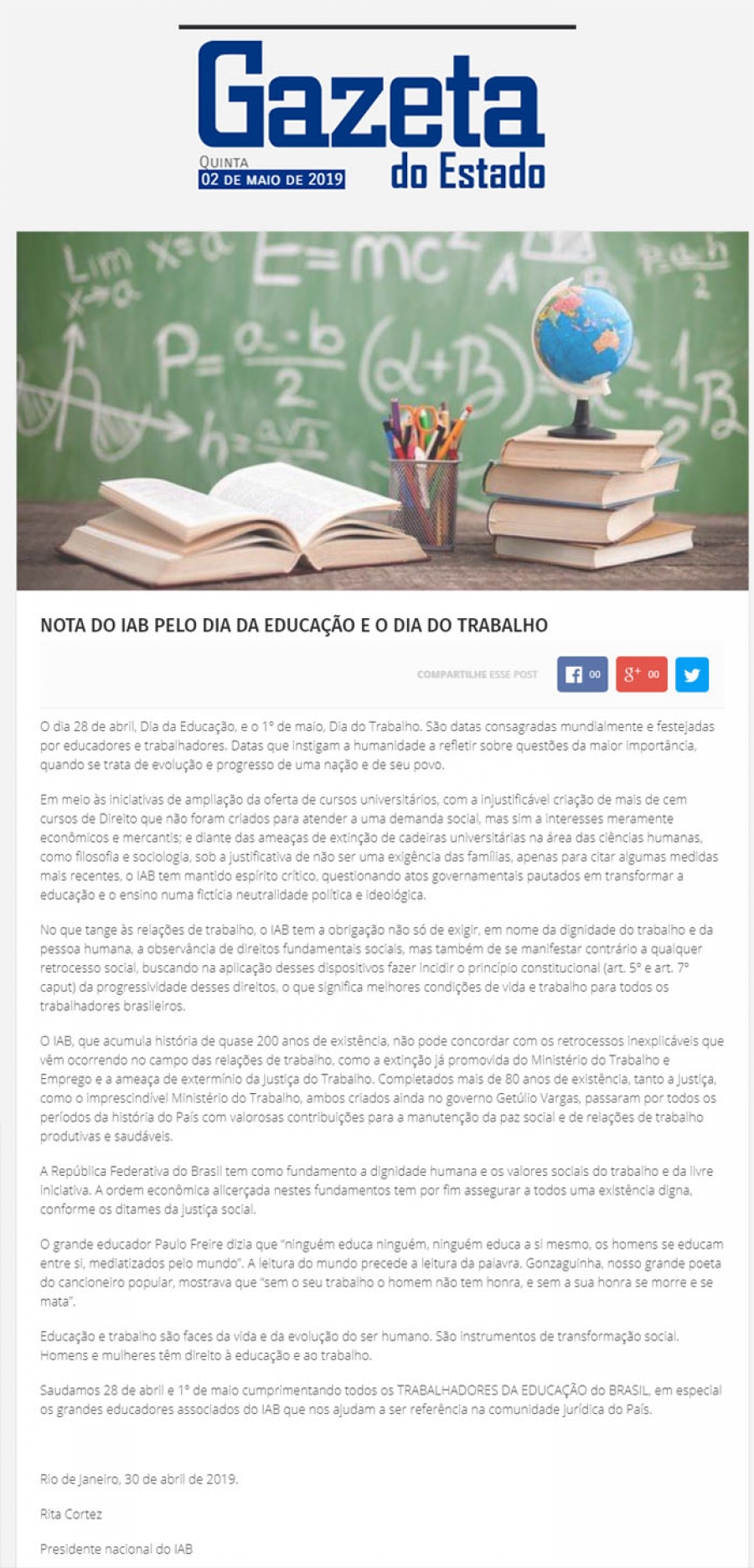 Nota do IAB pelo Dia da Educação e o Dia do Trabalho