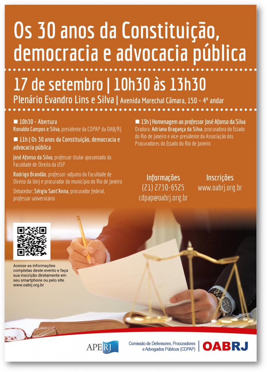 Dia 17/09/2018 das 10:00h às 13:30h - LOCAL: Plenário Evandro Lins e Silva - Av: Marechal Câmara nº 150 - 4º andar - Centro - Rio de Janeiro - RJ