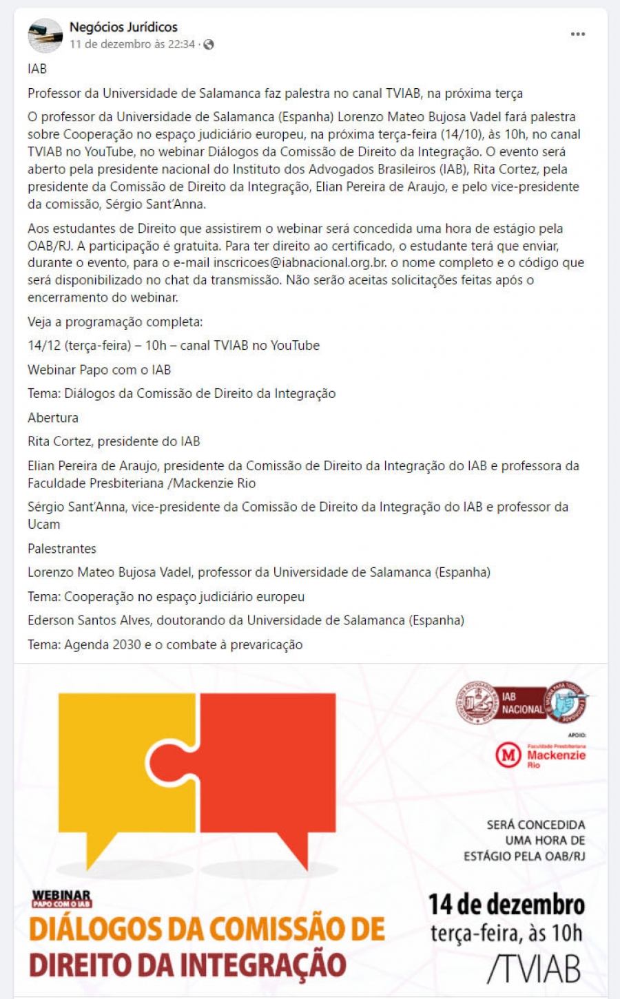 Professor da Universidade de Salamanca faz palestra no canal TVIAB, nesta terça