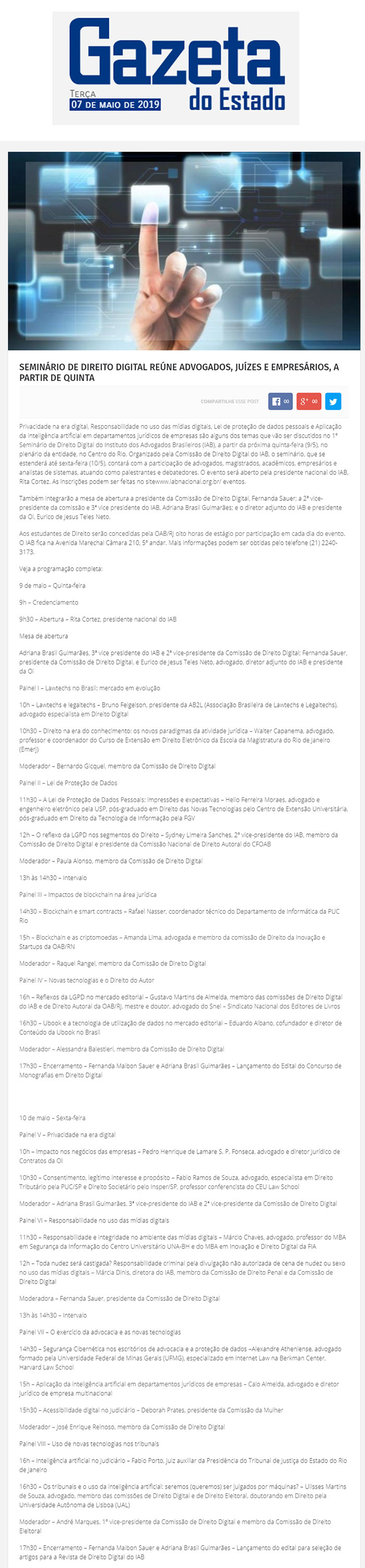 FONTE: Gazeta do Estado (GO) - 07/05/2019