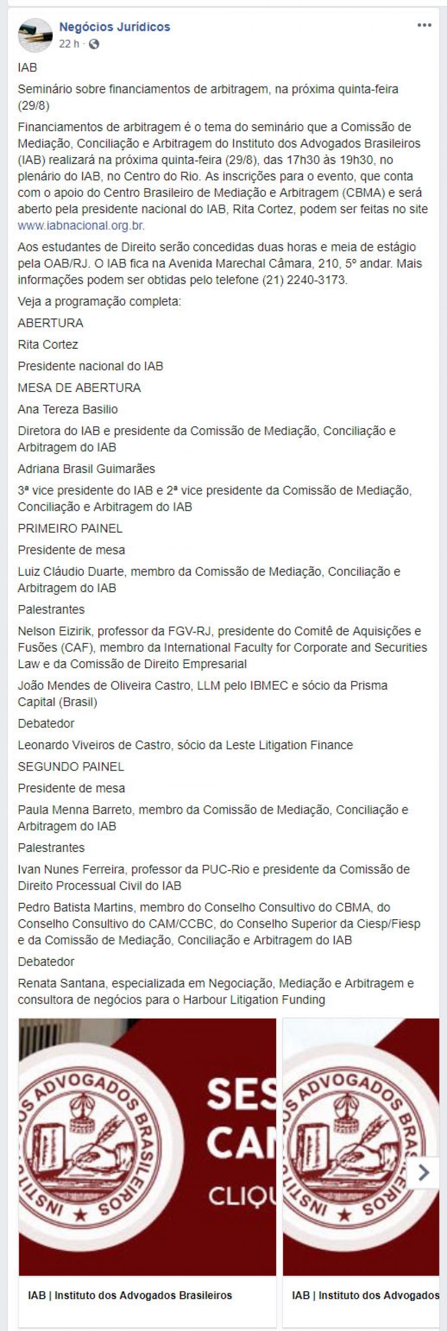 Seminário sobre financiamentos de arbitragem, na próxima quinta-feira (29/8)