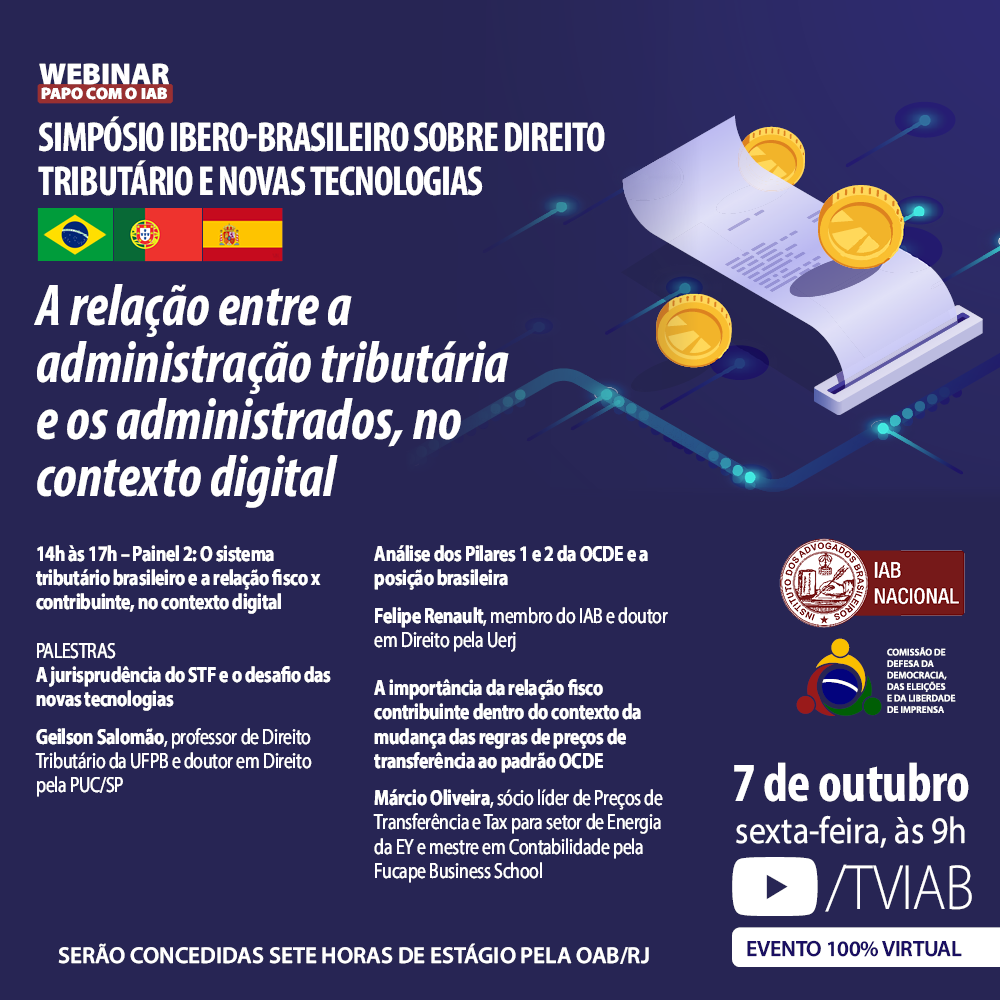 Título: Simpósio Ibero-brasileiro sobre Direito Tributário e as Novas Tecnologias: A relação entre a Administração tributária e os administrados, no contexto digital.