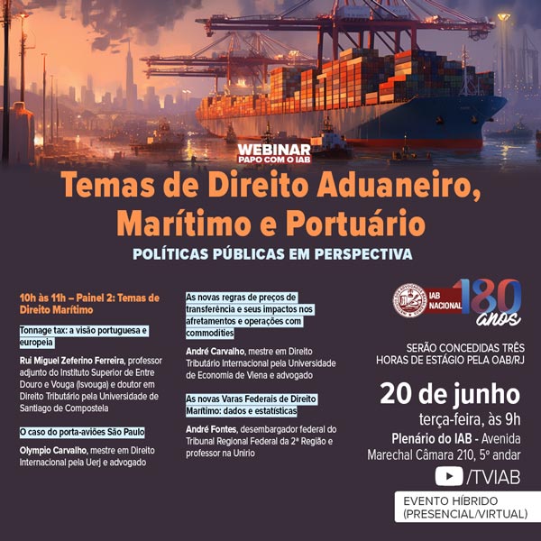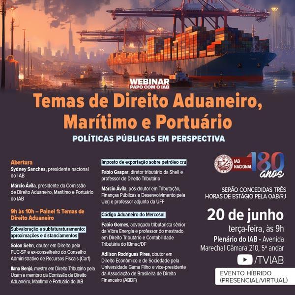 [Webinar - Papo com o IAB] Temas do Direito Aduaneiro, Marítimo e Portuário
