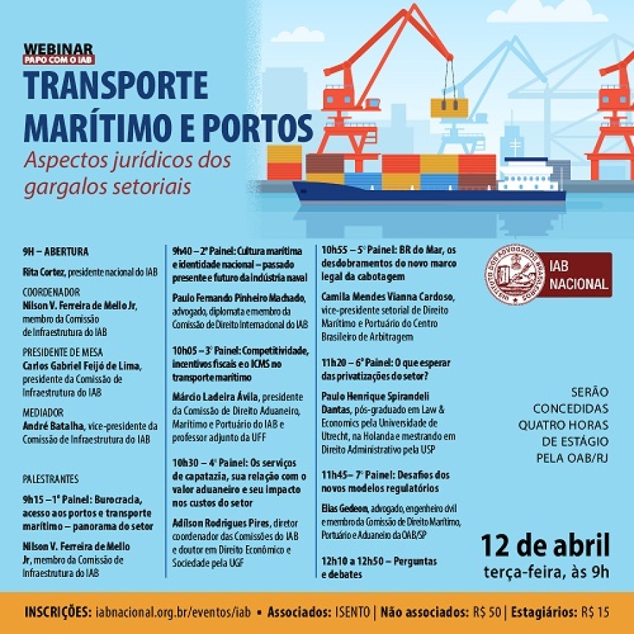 [Webinar - Papo com O IAB] Transporte Marítimo e Portos - Aspectos jurídicos dos gargalos setoriais