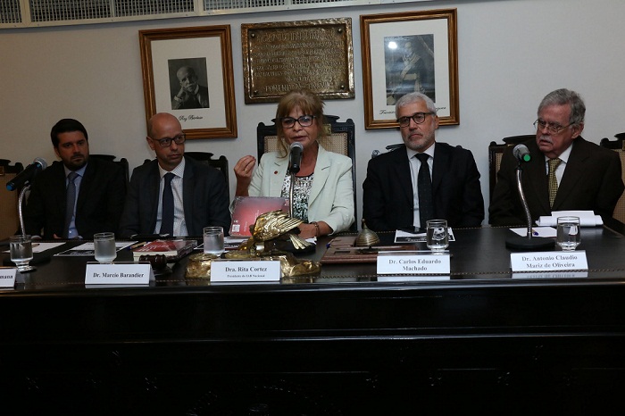 No evento, aberto pela presidente do IAB, também integraram a mesa o presidente da Comissão de Direito Penal, Marcio Barandier, e os membros da comissão Carlos Eduardo Machado e Maurício Stegemann Dieter. “Os 22 relatores dos pareceres reunidos no livro produziram um excelente trabalho científico, marcado pela honestidade intelectual e isento de motivações pessoais, ideológicas, políticas ou partidárias”, afirmou Marcio Barandier.
