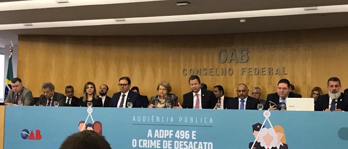 O presidente do IAB lembrou que a OAB tentou acabar, em 1994, com o desacato atribuído a advogados, mas o STF, no julgamento de uma Ação Direta de Inconstitucionalidade, retirou o dispositivo que faria parte do Estatuto da Advocacia. Técio informou que o IAB irá pleitear a condição de amicus curiae na ADPF 496 para participar dos debates no Supremo. O presidente concluiu a sua defesa pelo fim da aplicação do dispositivo do CP afirmando: “Já vai tarde o desacato”.