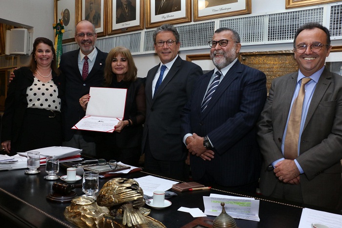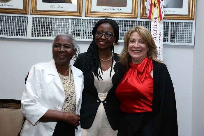 No seu pronunciamento, Janaína Muniz da Silva disse: “A chegada desta jovem baiana a esta Casa quase bicentenária é uma homenagem às milhares de mulheres negras que ajudaram a construir este País, entre elas, a Dra. Altamira Muniz, minha mãe e advogada, aqui presente”. A nova consócia falou de seu trabalho na OAB/BA e nas universidades em defesa da educação. “Ninguém pode ser privado dos seus direitos, por desconhecê-los”, afirmou a advogada, que complementou: “A educação é a única forma de aproximar o Direito daqueles que dele necessitam”. Altamira Muniz, Janaína Muniz da Silva e Angela Mendes