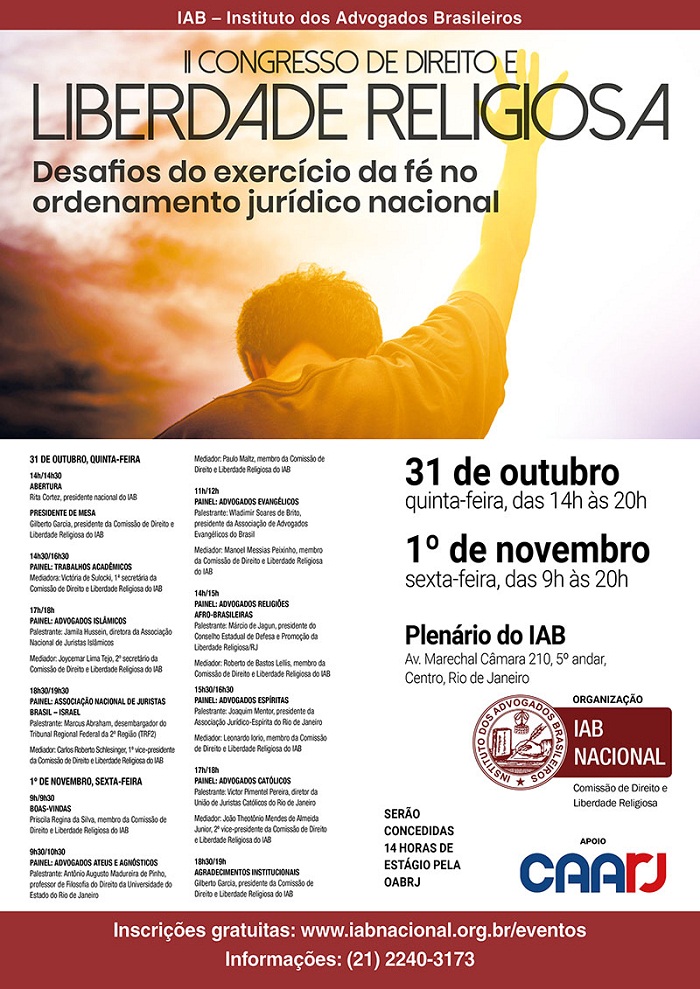 Mediador: Roberto de Bastos Lellis, membro da Comissão de Direito e Liberdade Religiosa do IAB