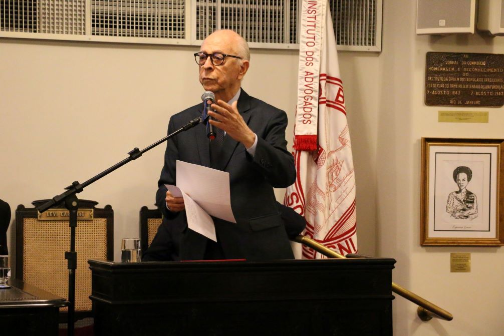Membro do IAB há 35 anos, Antonio Celso Pereira se declarou honrado por receber uma comenda que leva o nome de Levi Carneiro. Além de um grande jurista e político, o advogado também era especialista em Direito Internacional. “É um motivo de grande felicidade ser homenageado com o nome desse cidadão com tão firme natureza civilizatória. E, como advogado, eu lamento e protesto contra os dias trágicos que vivemos. Temos assistido ao ressurgimento das guerras de conquista e das graves violações aos direitos humanos nos planos nacional e internacional. Isso precisa acabar”, afirmou.
