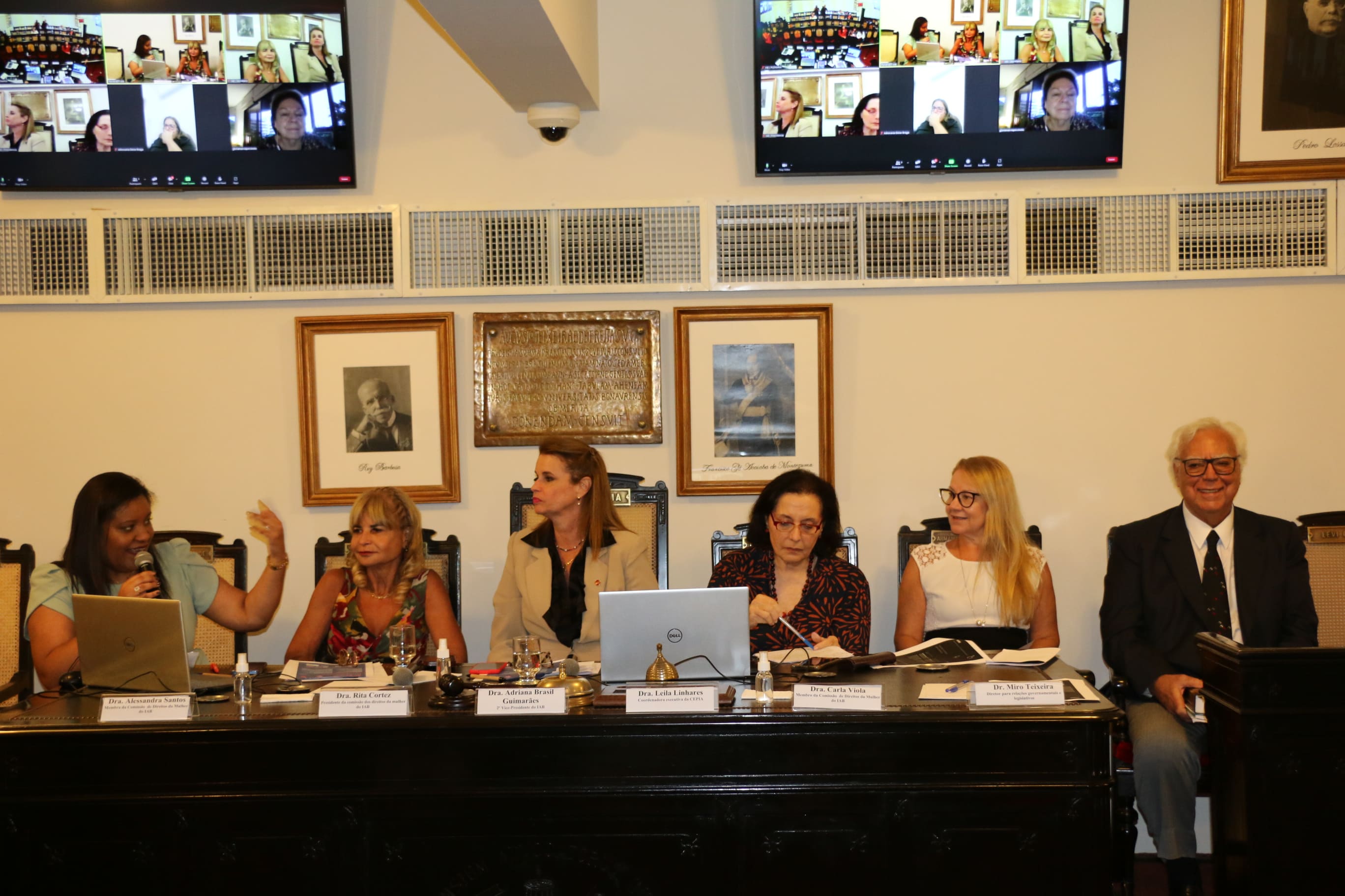 Da esq. para a dir., Alessandra Santos, Rita Cortez, Adriana Guimarães, Leila Linhares, Carla Viola e Miro Teixeira