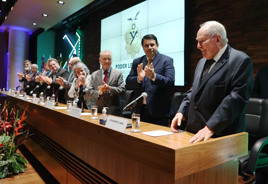 Criada para homenagear personalidades jurídicas de destaque, a Medalha do Mérito Jurídico Ministro José Bernardo Cabral, instituída pelo Projeto de Resolução 9/21 da Aleam, foi entregue pelo autor da proposta, Álvaro Campelo. Durante o discurso de homenagem, o deputado afirmou que Bernardo Cabral sempre foi um defensor do Amazonas e dos recursos naturais do estado. “Bernardo Cabral é uma das personalidades mais reverenciadas e respeitadas do Brasil. Isso se tornou mais acentuado depois que ele deixou a vida pública, demonstração de que redigiu uma gloriosa trajetória com uma herança incalculável. Ele não é apenas um dos maiores juristas da pátria, nem somente um dos maiores políticos, mas sim um dos maiores homens públicos da história do Brasil”.