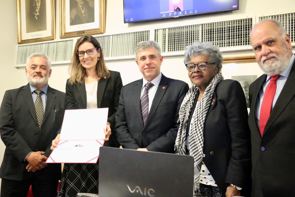 Da esq. para a dir., Paulo Parente Marques Mendes, Tatiana Campello Lopes, Sydney Limeira Sanches, Edmée da Conceição Ribeiro Cardoso e Armando de Souza Pela primeira vez empossando um novo membro, o presidente da Comissão de Propriedade Industrial do IAB, Paulo Parente Marques Mendes, recebeu sua indicada, Tatiana Campello Lopes, enaltecendo a qualificação da advogada, que fará parte do mesmo grupo. “Presidir essa comissão é um desafio, mas trazendo a Tatiana, uma mulher forte e competente, e com os demais integrantes, nós iremos trabalhar na área. Sem uma propriedade industrial forte, dificilmente teremos um País desenvolvido”, disse Mendes. A empossada, que sempre atuou nesse campo, afirmou que é uma honra fazer parte do IAB. “Eu defendo que a educação é fundamental e na área de propriedade intelectual sabemos o quão importante é disseminar essa informação para todos que estão no mundo jurídico e fora dele”, concluiu Tatiana Lopes.