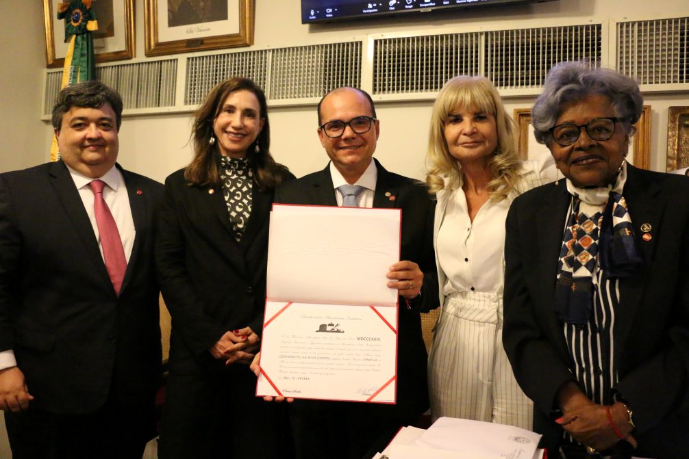 Novo integrante das Comissões de Direito Ambiental e de Direito Desportivo, Leonardo Campos ingressou no IAB por indicação da diretora Cultural, Marcia Dinis, e de Rita Cortez. “Ele tem um currículo acadêmico de respeito, com muitas pós-graduações, e não tenho dúvidas de que dará uma grande contribuição ao Instituto”, ressaltou Rita. Reforçando os elogios, Marcia destacou a atuação profissional do empossado: “Leonardo é um grande advogado que atua nas áreas ambiental e empresarial e mostrou sua competência quando foi tesoureiro do Conselho Federal da OAB”.