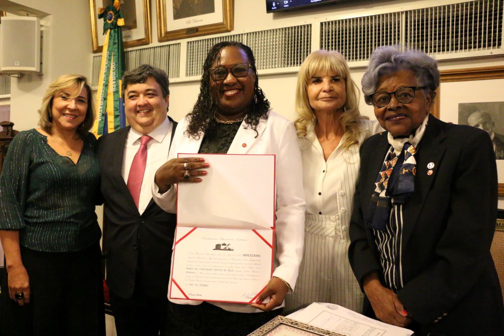 A segunda a ler o compromisso de posse foi Maria da Conceição de Jesus, indicada pela consócia Suzani Fernandes Ferraro e por Rita Cortez. Definida como uma profissional de excelência, a empossada é especialista em Direito Previdenciário e irá compor as Comissões de Direitos Humanos e de Seguridade Social. “Maria da Conceição é determinada e competente, uma mulher preta que enfrentou várias dificuldades e venceu todas como alguém resiliente e forte”, elogiou Suzani.
