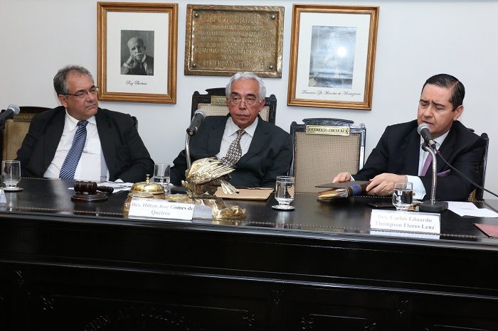 Ao assumir a presidência da mesa, o desembargador Hilton José Gomes de Queiroz reforçou a manifestação do presidente nacional do IAB: “Ao entrar neste plenário, sentimos que tudo nesta Casa revela a dimensão histórica do IAB para o universo jurídico nacional, em razão das contribuições dadas por venerandas figuras que estão na galeria de fotografias aqui expostas, como os juristas Nabuco de Araújo, Galdino Siqueira e Rui Barbosa, responsáveis pela edificação do Instituto”.