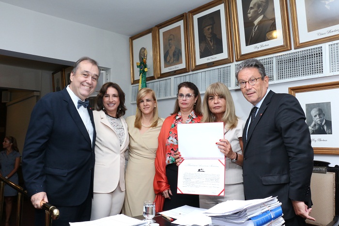 O desembargador Aluísio Gonçalves de Castro Mendes, do Tribunal Regional Federal da 2ª Região (TRF2), tomou posse como membro honorário do Instituto dos Advogados Brasileiros (IAB), na sessão ordinária desta quarta-feira (27/2), conduzida pela presidente nacional, Rita Cortez. Também foram empossados, como membros efetivos, os advogados Aloysio Augusto Paz de Lima Martins, Augusto Barbosa Moreira de Carvalho e Bruna Guimarães Silva de Lima Martins. “É uma honra integrar os quadros desta instituição quase bicentenária, que sempre congregou os expoentes da área jurídica, e espero corresponder à confiança em mim depositada pelo IAB”, afirmou o desembargador Aluísio Mendes, que integrará a Comissão de Direito Processual Civil. Ele foi indicado ao Instituto pela diretora-secretária Ana Tereza Basílio. “É um magistrado sensível aos problemas das partes, amigo dos advogados e um grande especialista em Direito Processual Civil”, destacou a advogada.