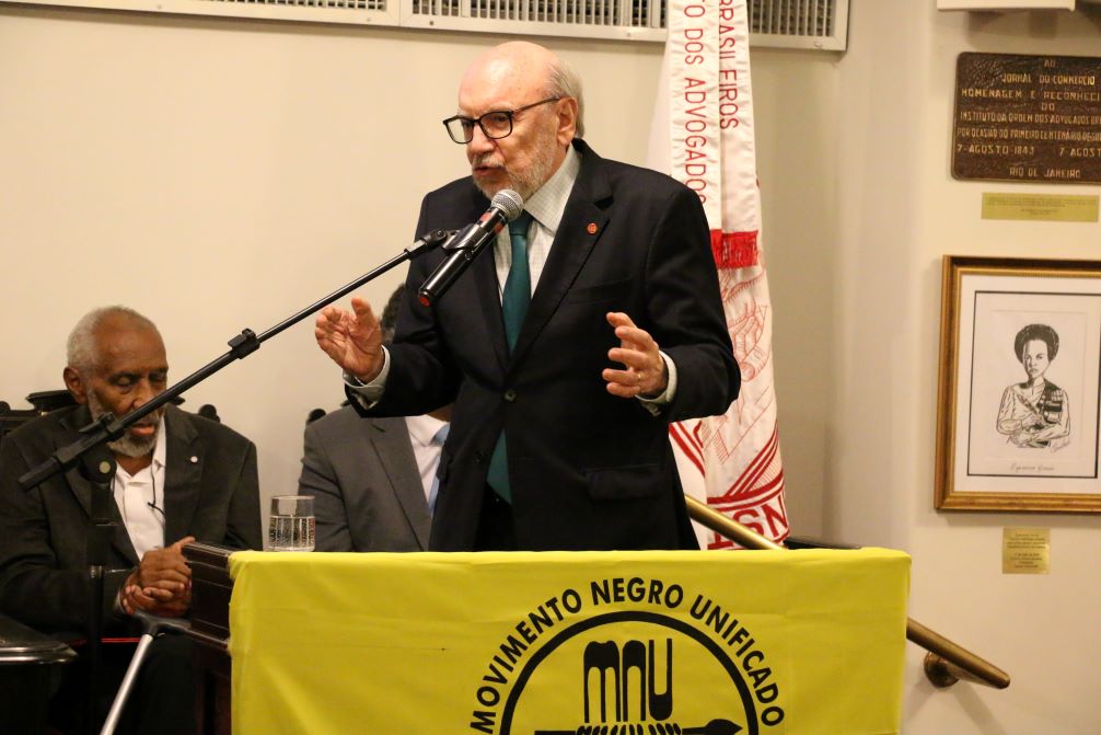 Soraia também foi elogiada pelo ator Deo Garcez, intérprete de Luiz Gama no teatro, que dirigiu o esquete e é também diretor da peça Caminhos de Esperança. O ator deu vida ao advogado abolicionista e, em junho deste ano, tomou posse simbolicamente no IAB. Em sua fala, ele também saudou Benedita da Silva e Yedo Ferreira, homenageados durante a solenidade. “Hoje, estamos fazendo uma reparação histórica, mas ela se deve também à luta diária e cotidiana desses dois militantes”, afirmou ele.