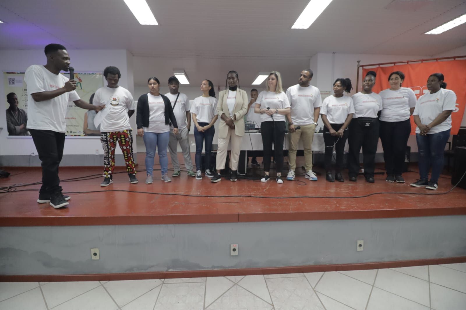 Da esq. para a dir., Kanhanga, Kizua Trindade, Ana Bermúdez, Adriano Januario Francisco, Maria silveira do Amaral, Eunice LopesCaroline Schaid, Jessé Toledo, Adelaide Marta Albino Chicomo, Ana Muanza Voca, Lisbeth Del Valle Garcia Olivares e Anne Dominique A Milceus Bruneau