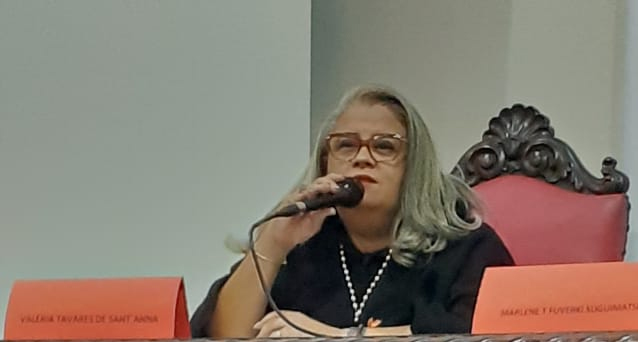 Também integraram a mesa de honra o reitor da UFPR, Ricardo Marcelo Fonseca; os presidentes da OAB/PR, Cássio Lisandro Telles, e do Tribunal Regional do Trabalho do PR, desembargadora Marlene T. Fuverki Suguimatsu, e o coordenador do seminário e membro o IAB, Sandro Lunard Nicoladeli. Valéria Tavares de Sant'Anna na abertura do seminário, na Universidade Federal do Paraná (UFPR)