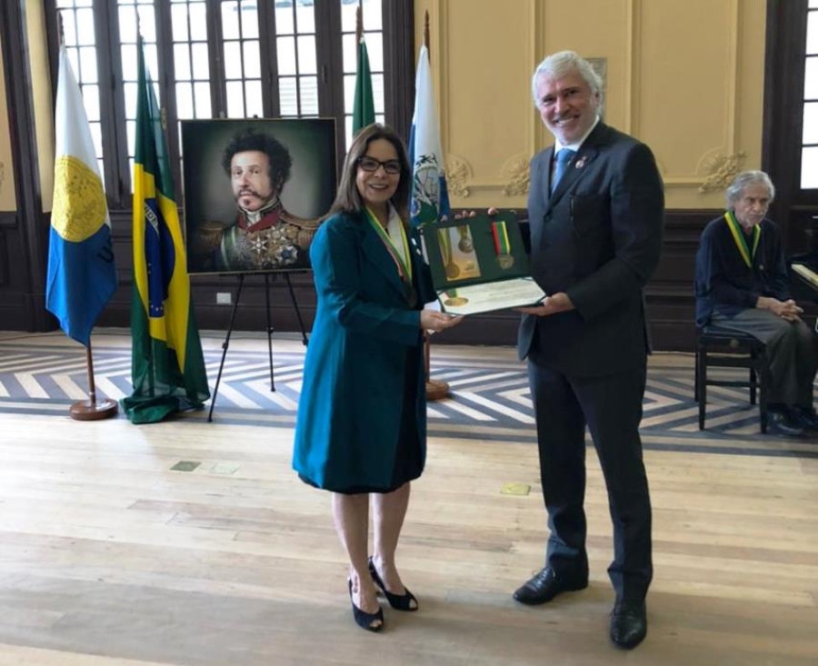 Ele recebeu a comenda das mãos da reitora da UFRJ, professora Denise Carvalho. Ao receber a honraria, Carlos Eduardo Machado se disse “muito honrado em poder receber, em nome do IAB, o Colar do Mérito Pedro, o Libertador” e ressaltou que o Instituto “sempre esteve na vanguarda do Direito, lutando pelo aprimoramento da ordem jurídica, o desenvolvimento dos valores sociais e por uma sociedade mais justa e equânime”.