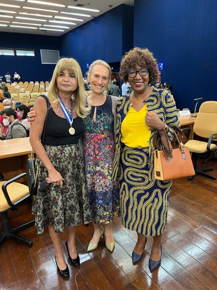 Rita Cortez estava acompanhada do 2º vice-presidente, Sydney Sanches, e de Mônica Alexandre Santos, membro efetivo do IAB, que foi anunciada pela presidente como “a primeira mulher negra a ocupar um cargo na diretoria de uma seccional, por ter sido eleita secretária-adjunta da OAB/RJ”. A homenageada também ressaltou a produção jurídica do IAB e as ações da OAB em defesa da classe: “São entidades que têm dado grandes contribuições ao País, sendo o IAB no campo acadêmico e a Ordem na qualidade da representatividade da advocacia brasileira”. Rita Cortez recebeu a comenda pelas mãos do desembargador do TJRJ Cláudio Dell`Orto.