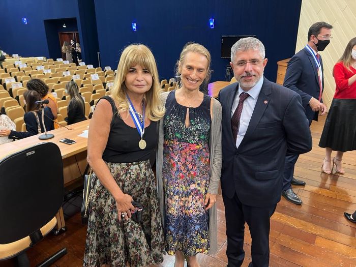 A Escola da Magistratura do Estado do Rio de Janeiro (Emerj) homenageou a presidente nacional do Instituto dos Advogados Brasileiros (IAB), Rita Cortez, com a entrega da Medalha do Mérito, em solenidade realizada nesta quinta-feira (16/12), no auditório Antônio Carlos Amorim, na sede do Tribunal de Justiça do Estado do Rio de Janeiro (TJRJ). “Agradeço muito a honra de ser homenageada pela Emerj, que é uma escola de destaque nacional, porque pratica a educação, que é muito mais do que repassar conhecimentos, mas principalmente cultivar valores”, afirmou Rita Cortez. De acordo com a advogada trabalhista, “estas homenagens, mais do que o reconhecimento individual, devem servir de estímulo à advocacia como um todo, para que mantenha o seu espírito cívico voltado para a defesa da Constituição e da democracia”.