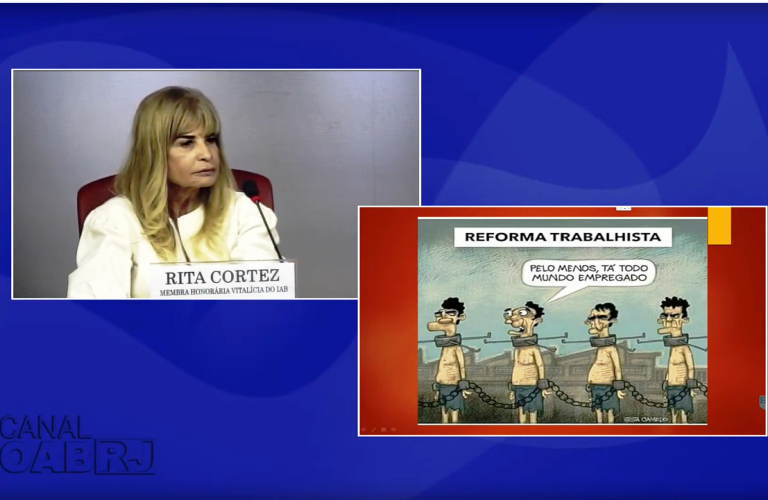Para contextualizar como se deu a reforma trabalhista, a advogada citou o projeto Ponte para o futuro, criado por meio da união dos partidos PMDB e PSDB, com medidas que inviabilizam direitos universais de acesso a serviços públicos, ou seja, menos direitos e menos segurança para os trabalhadores (reforma trabalhista) e imposição de mais anos de trabalho aos idosos (reforma previdenciária). Os trabalhadores, segundo Rita Cortez, nunca foram chamados para discutir a reforma trabalhista.