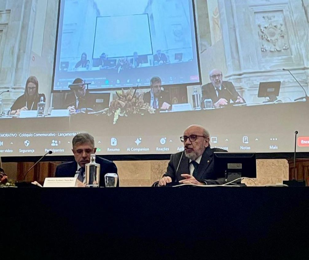 A mesa de abertura do Colóquio Comemorativo, que teve diversas palestras sobre Direito Empresarial ao longo do dia, foi composta pelo orador oficial do IAB, Sergio Tostes, pelo vice-reitor da Universidade de Coimbra, João Nuno Calvão da Silva, e pela subdiretora da Faculdade de Direito da instituição, Sandra Passinhas.