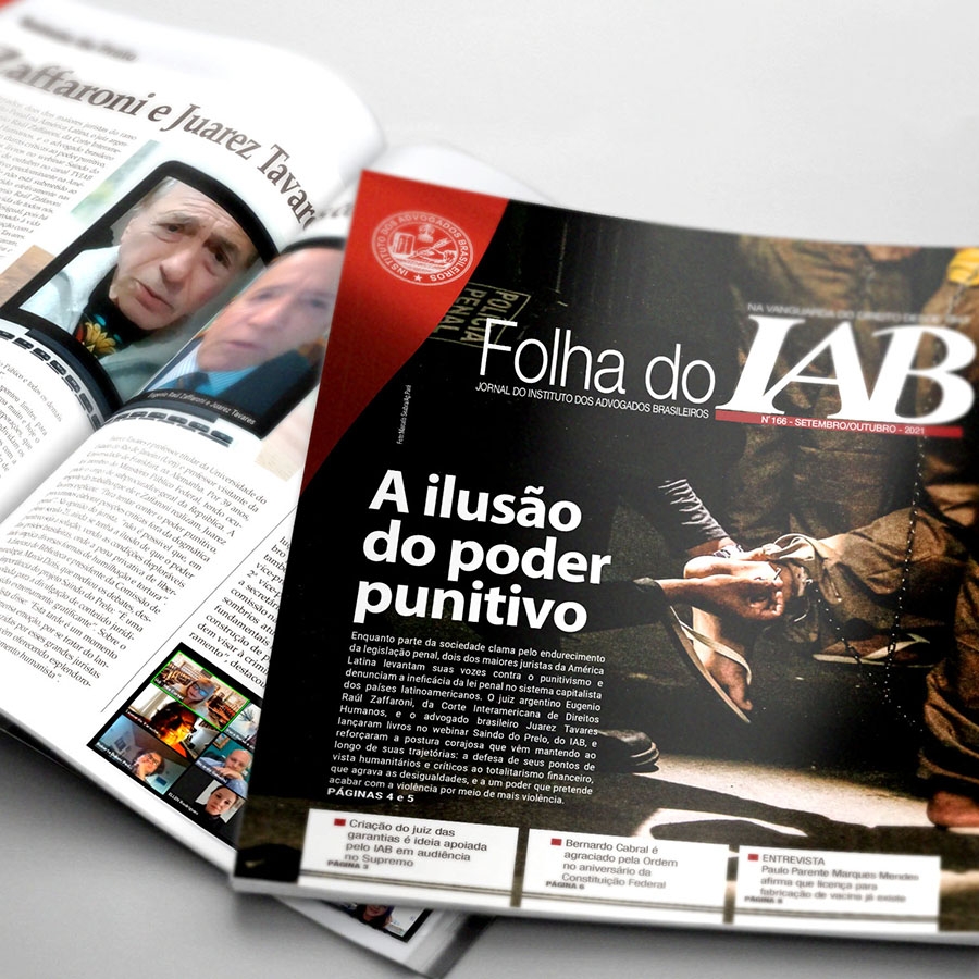O lançamento de livros no webinar Saindo do Prelo, no dia 26 de outubro, pelo juiz argentino Eugenio Raúl Zaffaroni, da Corte Interamericana de Direitos Humanos, e pelo advogado brasileiro Juarez Tavares – considerados dois dos maiores juristas do Direito Penal na América Latina – é o destaque da edição Setembro/Outubro da FOLHA DO IAB. Ao lançarem, respectivamente, Colonização punitiva e totalitarismo financeiro: a criminologia do ser-aqui e Crime: crença e realidade, Zaffaroni e Juarez Tavares fizeram duras críticas ao punitivismo. Participaram do webinar o ex-presidente da Colômbia Ernesto Samper, atual secretário-geral da União de Nações Sul-Americanas (Unasul); o ministro Rogerio Schietti Cruz, do Superior Tribunal de Justiça (STJ), e o professor Fernando Tenório Tagle, da Universidade Nacional Autônoma do México.