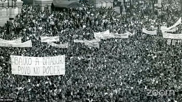 Resgate da democracia – São citadas também passagens históricas importantes do combate à ditadura e do resgate da democracia, como a Passeata dos Cem Mil; o retorno do exílio de personagens importantes da vida política nacional, como Miguel Arraes, Leonel Brizola, Paulo Freire, Betinho e Augusto Boal, entre outros, e a campanha pelas Diretas Já.