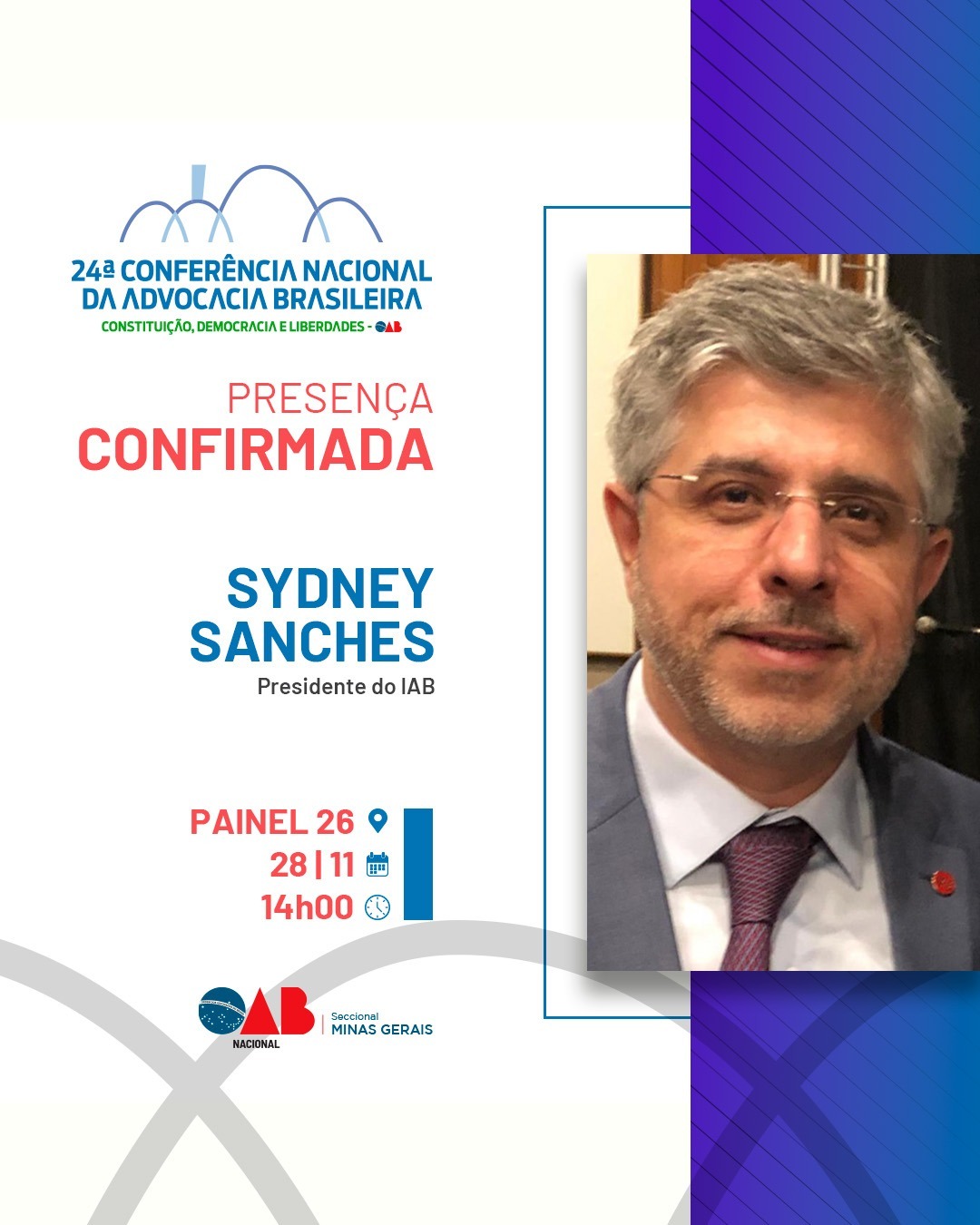 O presidente do IAB, Sydney Limeira Sanches, também é presença confirmada na conferência. Ele será o relator do Painel 26 do evento, sobre Direito e Cultura, que será realizado na terça-feira, às 14h. O advogado José Roberto de Castro será o presidente e o conselheiro federal da Ordem Daniel Blume será o secretário da mesa. O painel debaterá Justiça imaginária, liberdade de expressão na era digital, entre outros temas, e terá as participações do jornalista Pedro Bial, do presidente da Academia Brasileira de Letras (ABL), Merval Pereira, do professor da USP Tercio Sampaio Ferraz, da desembargadora do TJRJ Andréa Pachá, do advogado e influenciador digital Pedro Pacífico, da membro da Academia Brasileira de Letras Jurídicas (ABLJ) Judith Martins-Costa e do diretor jurídico das organizações Globo, Antônio Cláudio.