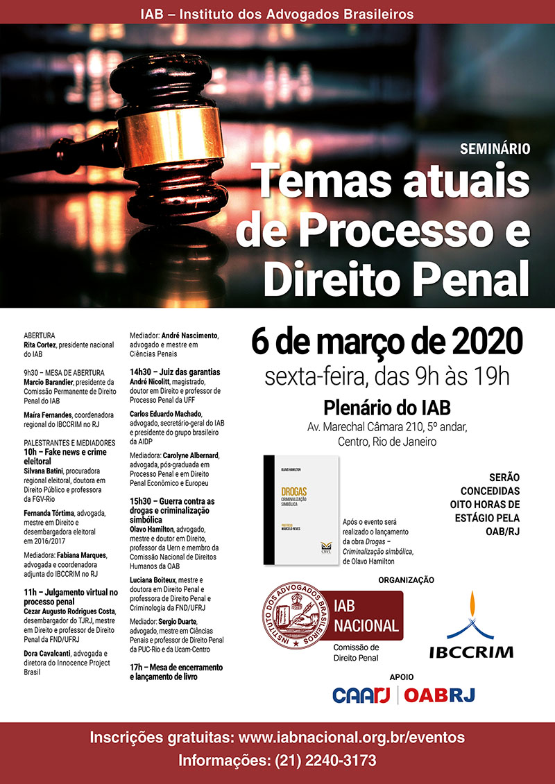 Mediador: Sergio Duarte, advogado, mestre em Ciências Penais e professor de Direito Penal da PUC-Rio e da Ucam-Centro