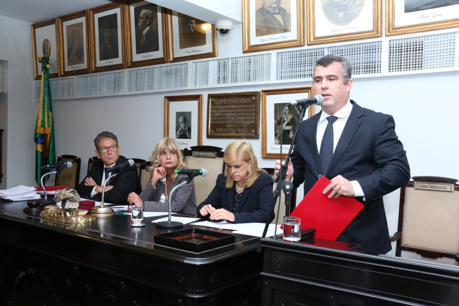 Da esq. para a dir., Antonio Laért Vieira Junior, Rita Cortez, Ana Tereza Basílio e Fábio Goulart Villela, na tribuna
