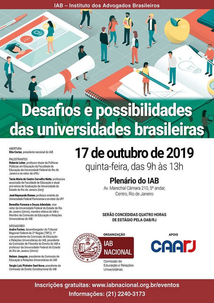 Benedito Fonseca e Souza Adeodato, vice-reitor da Universidade Federal do Estado do Rio de Janeiro (Unirio), membro efetivo do IAB e Membro da Comissão de Educação e Relações Universitárias do IAB