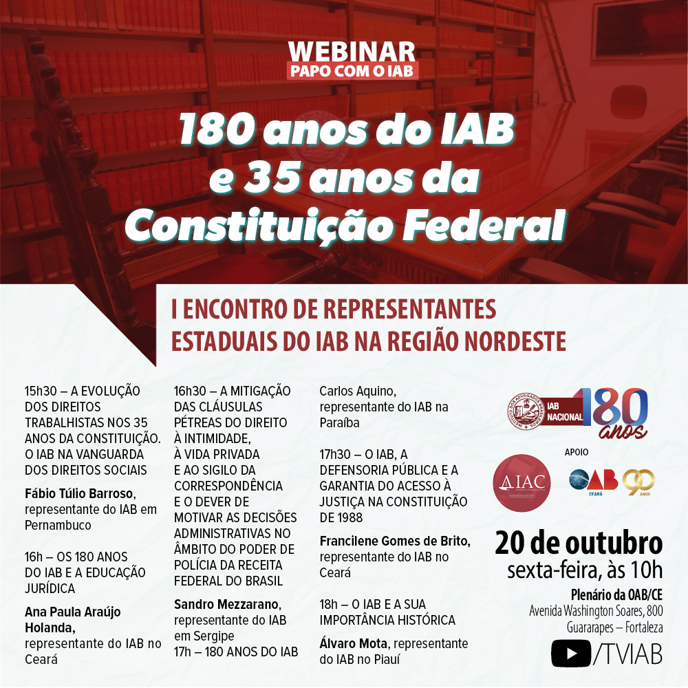Tema: A evolução dos direitos trabalhistas nos 35 anos da Constituição. O IAB na vanguarda dos direitos sociais